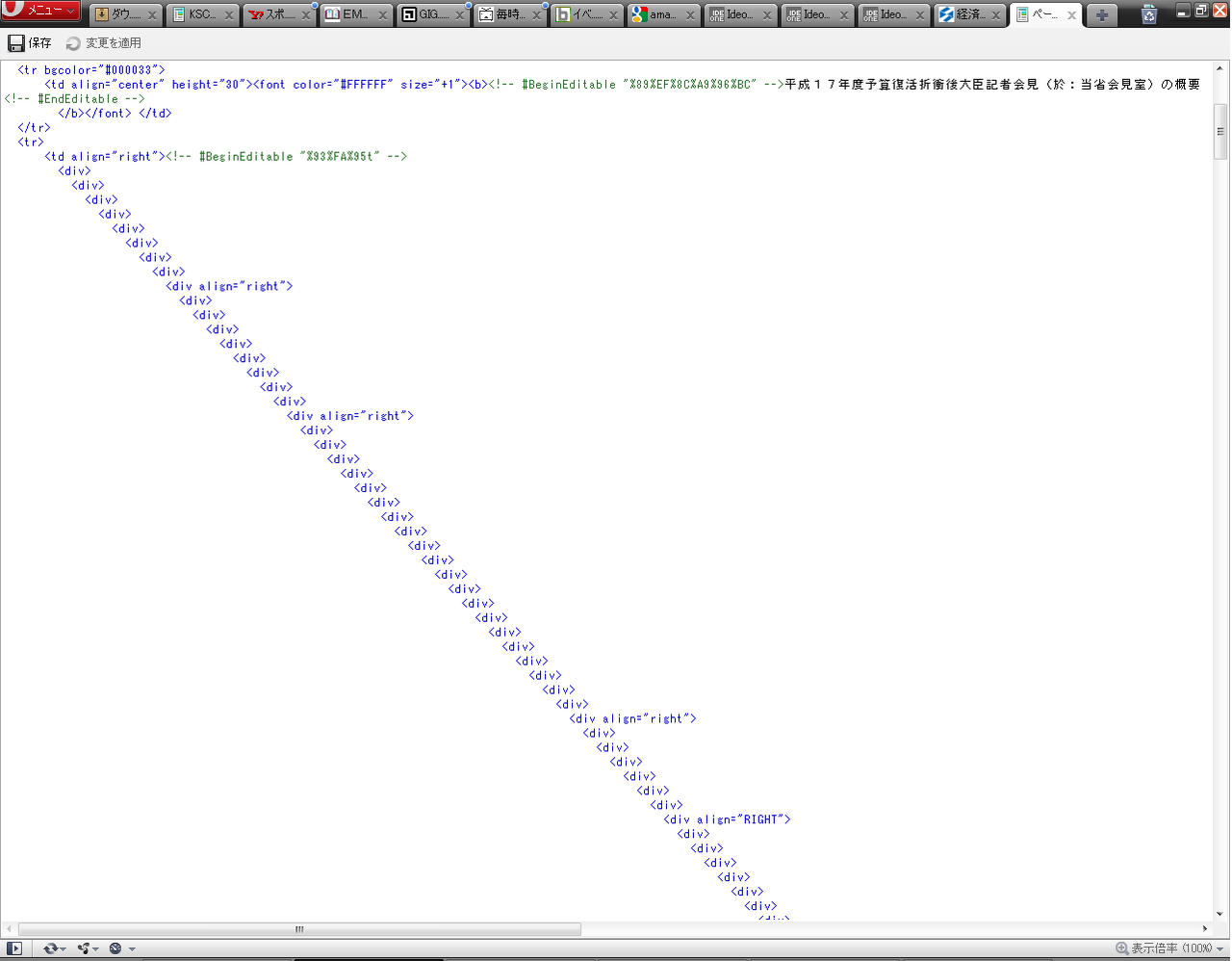 なお、2010年12月7日付の経済産業大臣の記者会見ページでは、divタグは多用されていません。