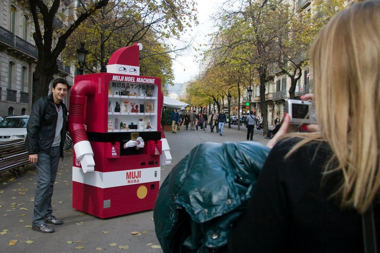 クリスマスが近づくスペインの街中に、「無印良品サンタ自動販売機」と日本語で書かれた謎のマシーンが出現した。サンタクロースを模したこの「MUJI NOEL MACHINE」は、現地のクリエイティブエージェンシーによって制作されたものと判明。「MUJI」のクリスマス商品を売って歩いている動画やヴィジュアルがYouTubeやブログに取り上げられ、話題が広がっている。