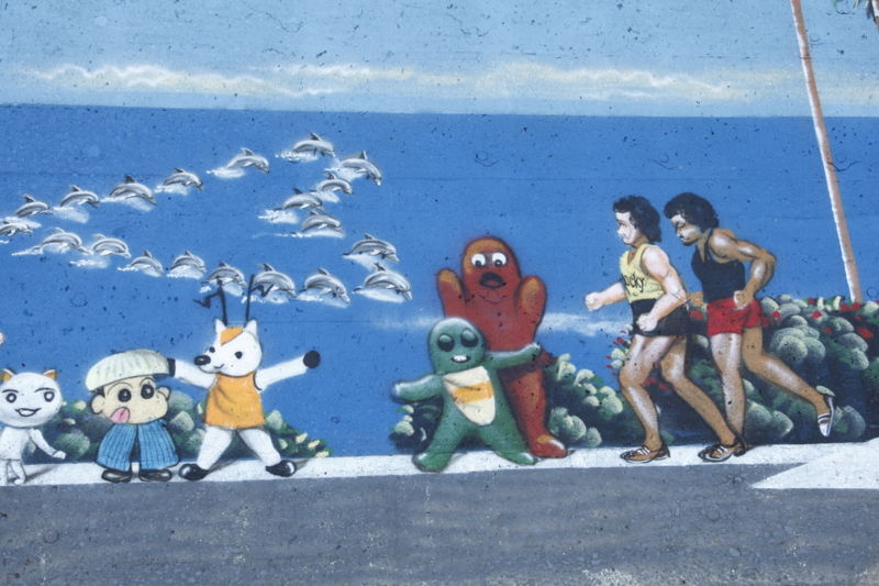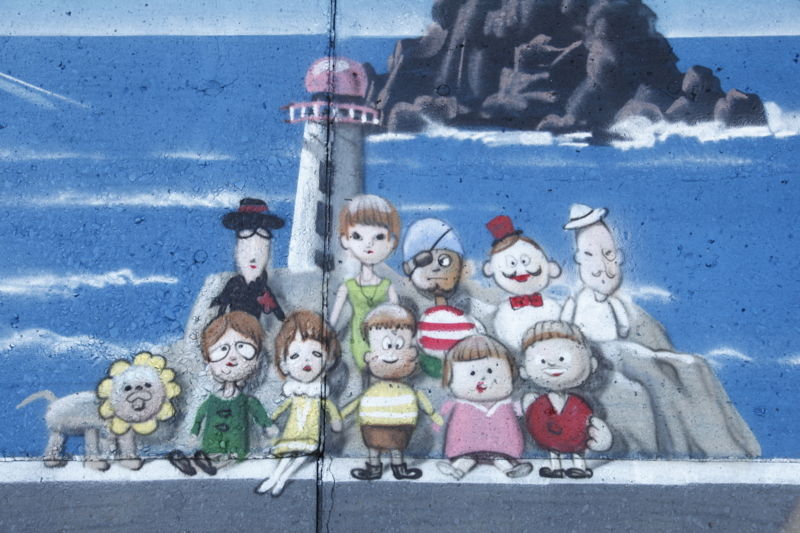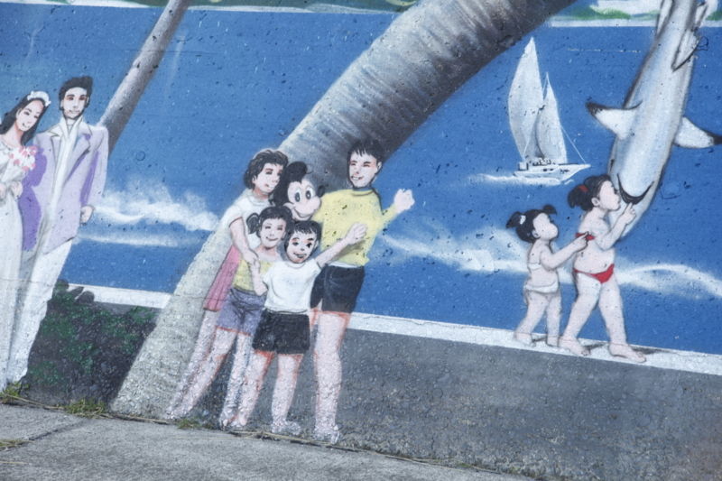 堤防?の絵は地元の小学生達が描いたんじゃなかった?