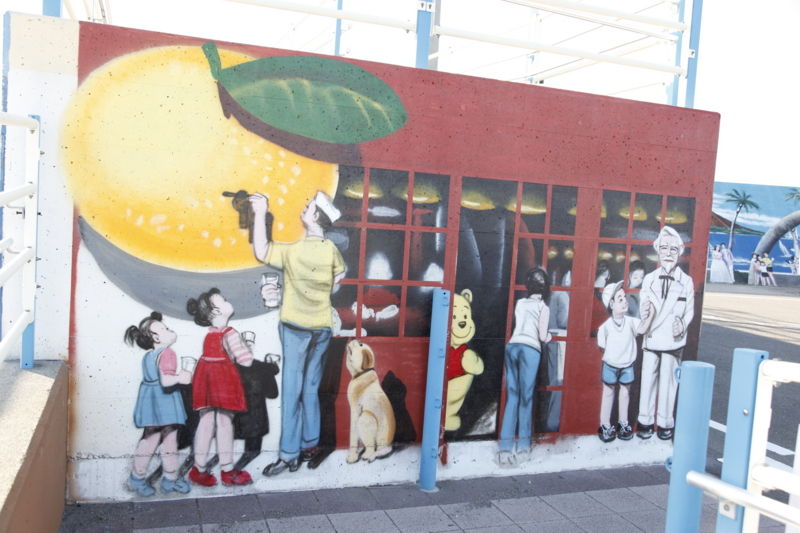 1月4日ごろ、市役所前のボンタンアメの壁画が完成したそうだ。