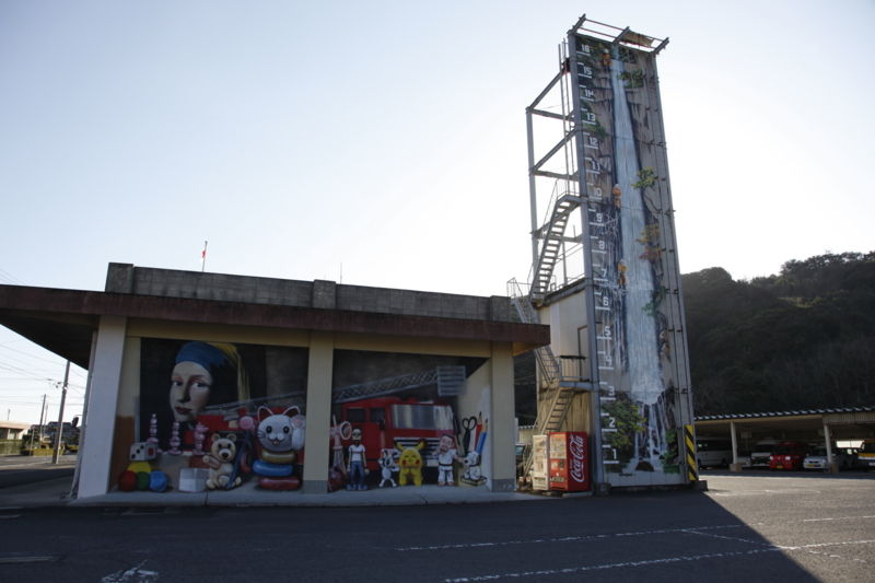 消防署長に、竹原前市長から「消防士の訓練用の壁に、壁画を描く」という話があった時、消防署長は一旦断ったそうだ。