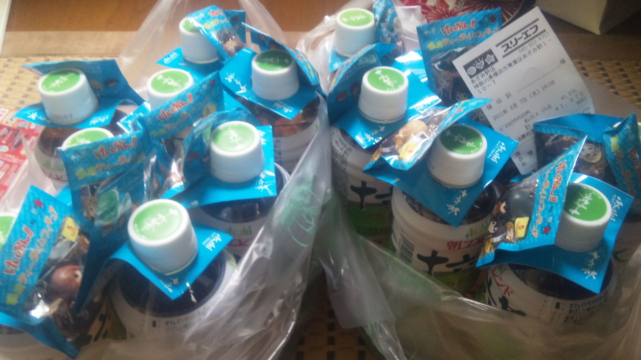 お茶にアニメの景品くっつけるだけでこんなに売れるとはおいしい商売だ