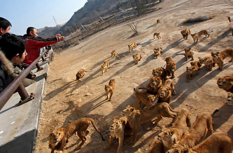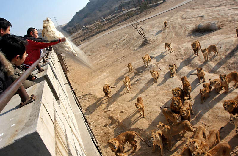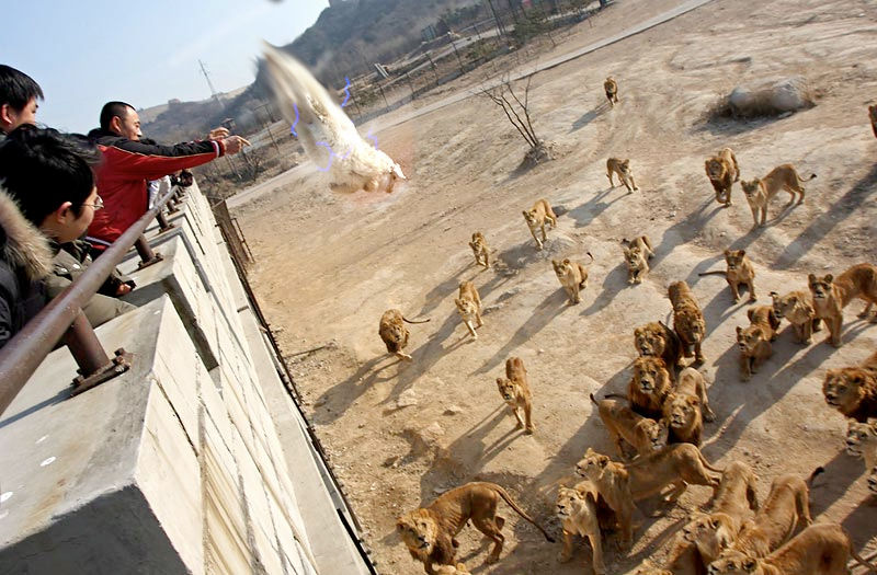 まぁ、これがアフリカとかで保護したライオンを野性に戻すための訓練とかなら良いけど