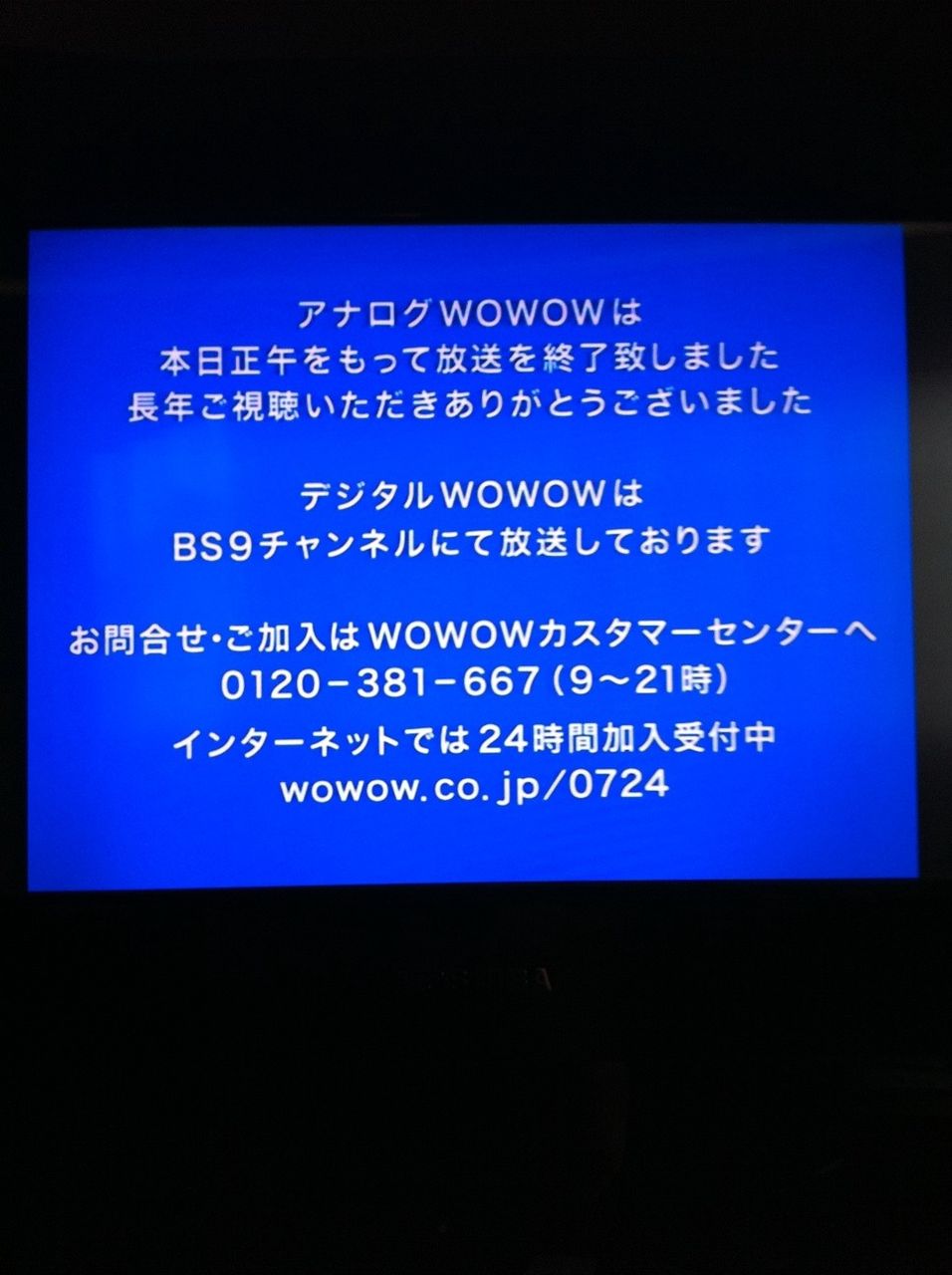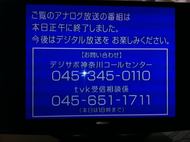 別地域のアナログ電波を拾ってた人達は御愁傷様でした。マジでアニメ見れなくなるね
