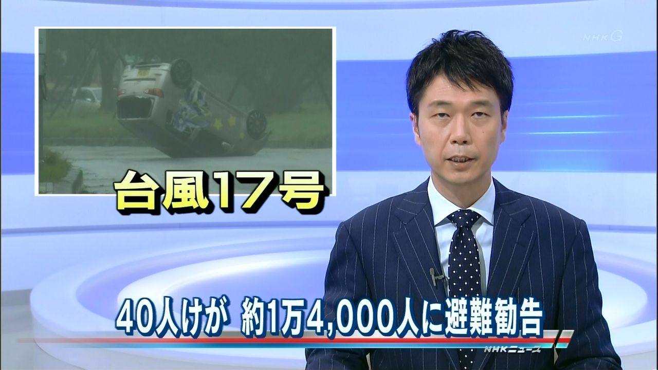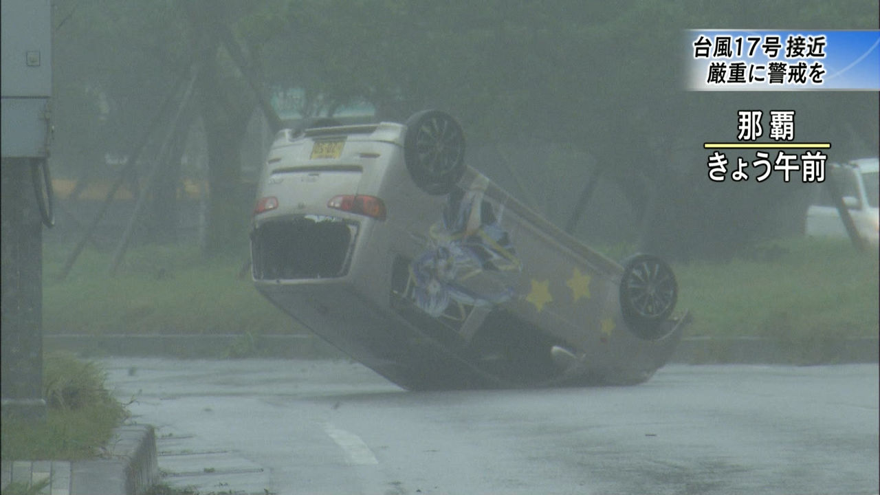 記事「台風17号、沖縄と奄美が暴風域 強風でトラック横倒し」より