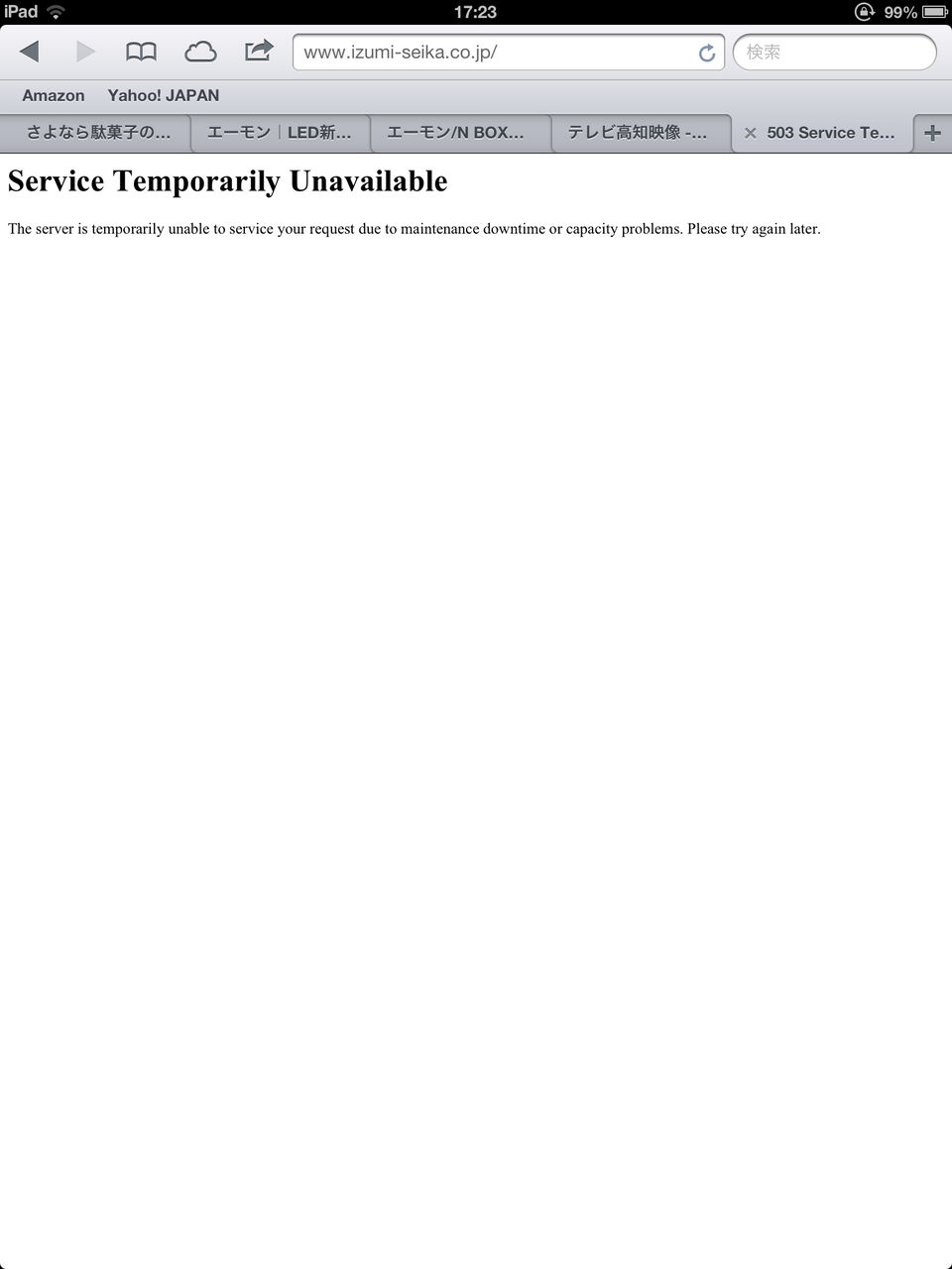 いずみ製菓公式鯖落ちしてるwwww