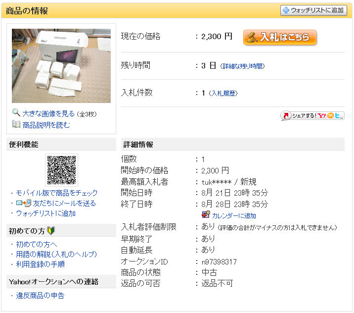 続きを読む3日後、Bが削除されて俺が次点で7000円で買いませんかと来る